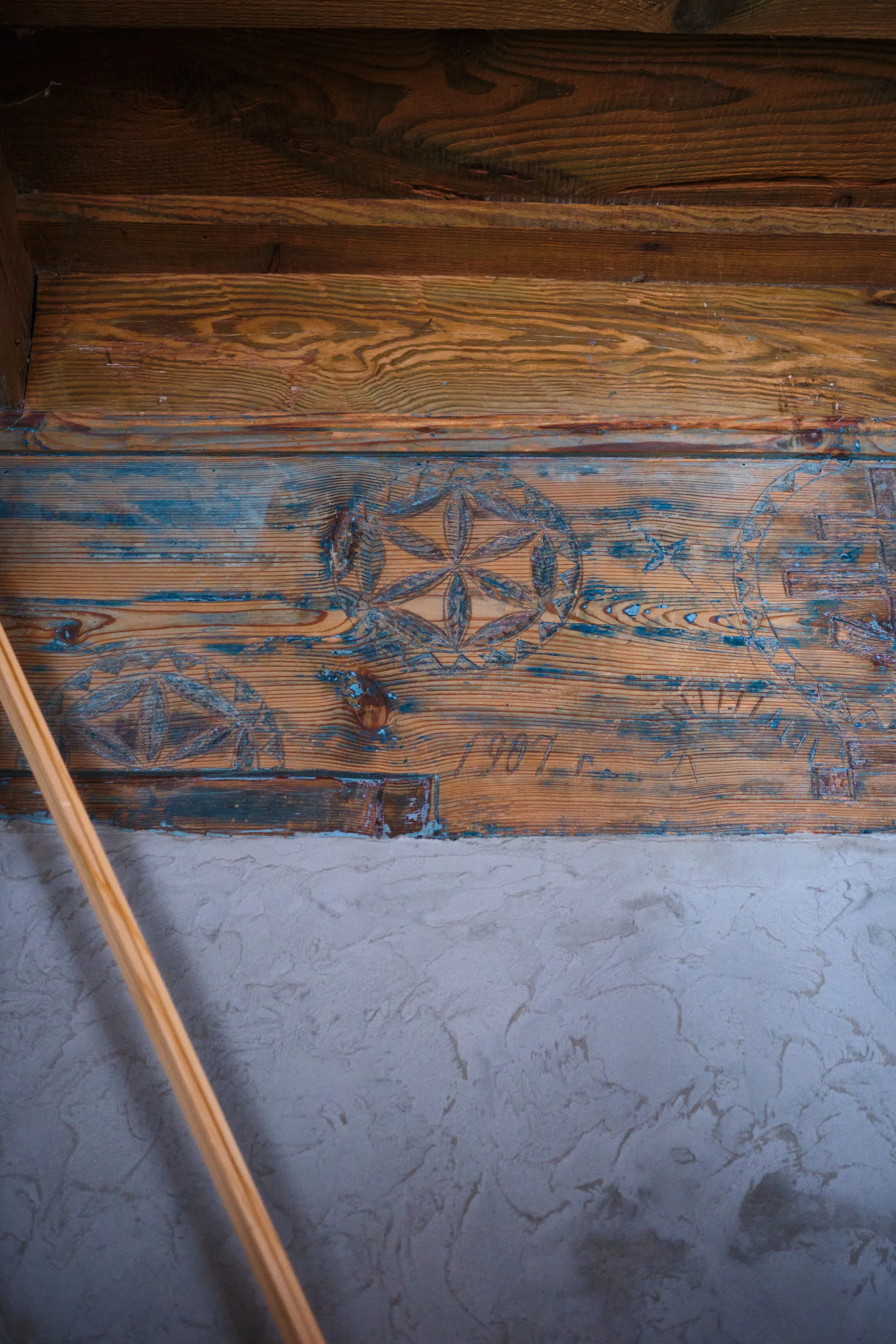 You can touch the very same wall that survived the war. The old markings are still visible on it. Here you can see that the house has been standing since 1907!